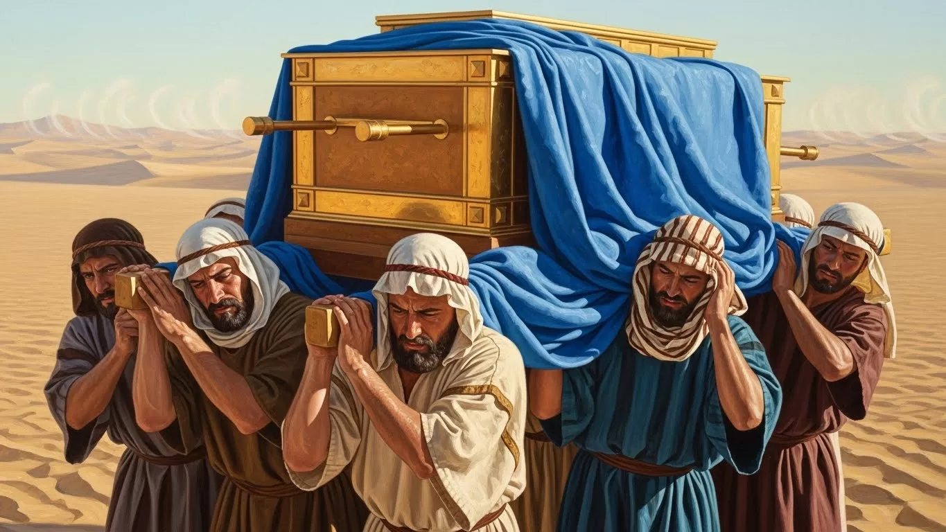Antes de pegarem em harpas, os levitas pegaram em vigas. Durante os 40 anos no deserto, a principal função dos clãs levíticos (Coatitas, Gersonitas e Meraritas) era montar, desmontar e carregar a pesada estrutura do Tabernáculo. Era um trabalho braçal, suado e invisível. Se os levitas não carregassem a Tenda, a Glória de Deus não se movia com o povo.