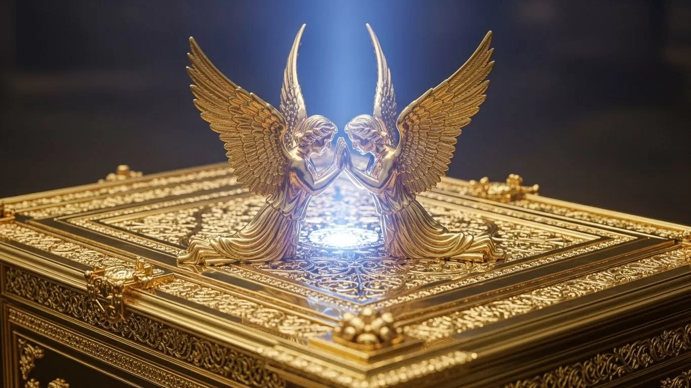 Dentro desse compartimento final, havia apenas um móvel: a Arca da Aliança. Era uma caixa de madeira revestida de ouro, contendo as Tábuas da Lei, o maná e a vara de Arão. Sobre a caixa, havia uma tampa de ouro maciço chamada “Propiciatório” (Lugar de Misericórdia), com dois querubins esculpidos.